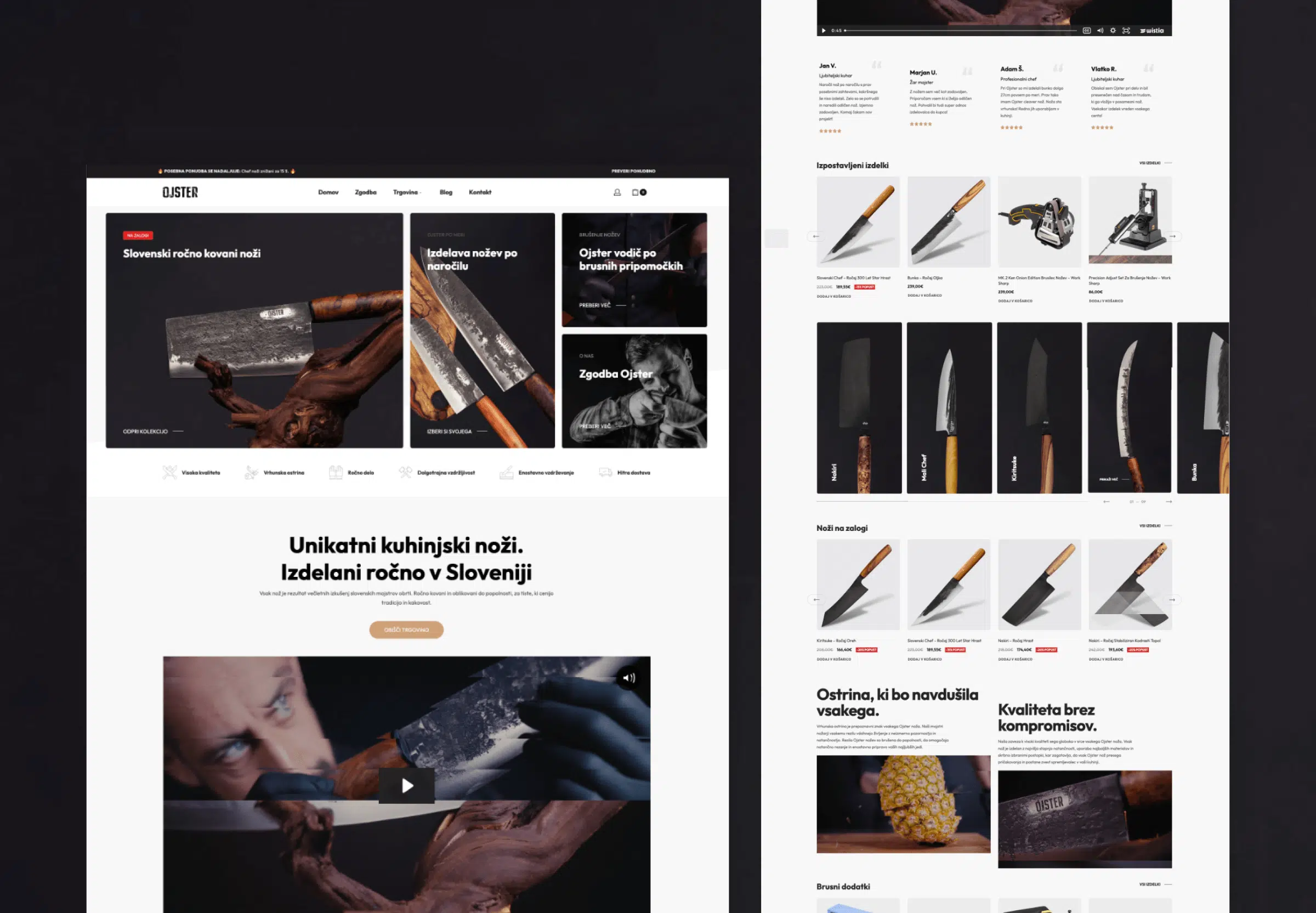 Ojster is a premium Slovenian brand crafting handmade knives and accessories. They needed an online presence that would convey the craftsmanship, heritage, and quality behind every blade, while also enabling direct-to-consumer sales and custom order requests.