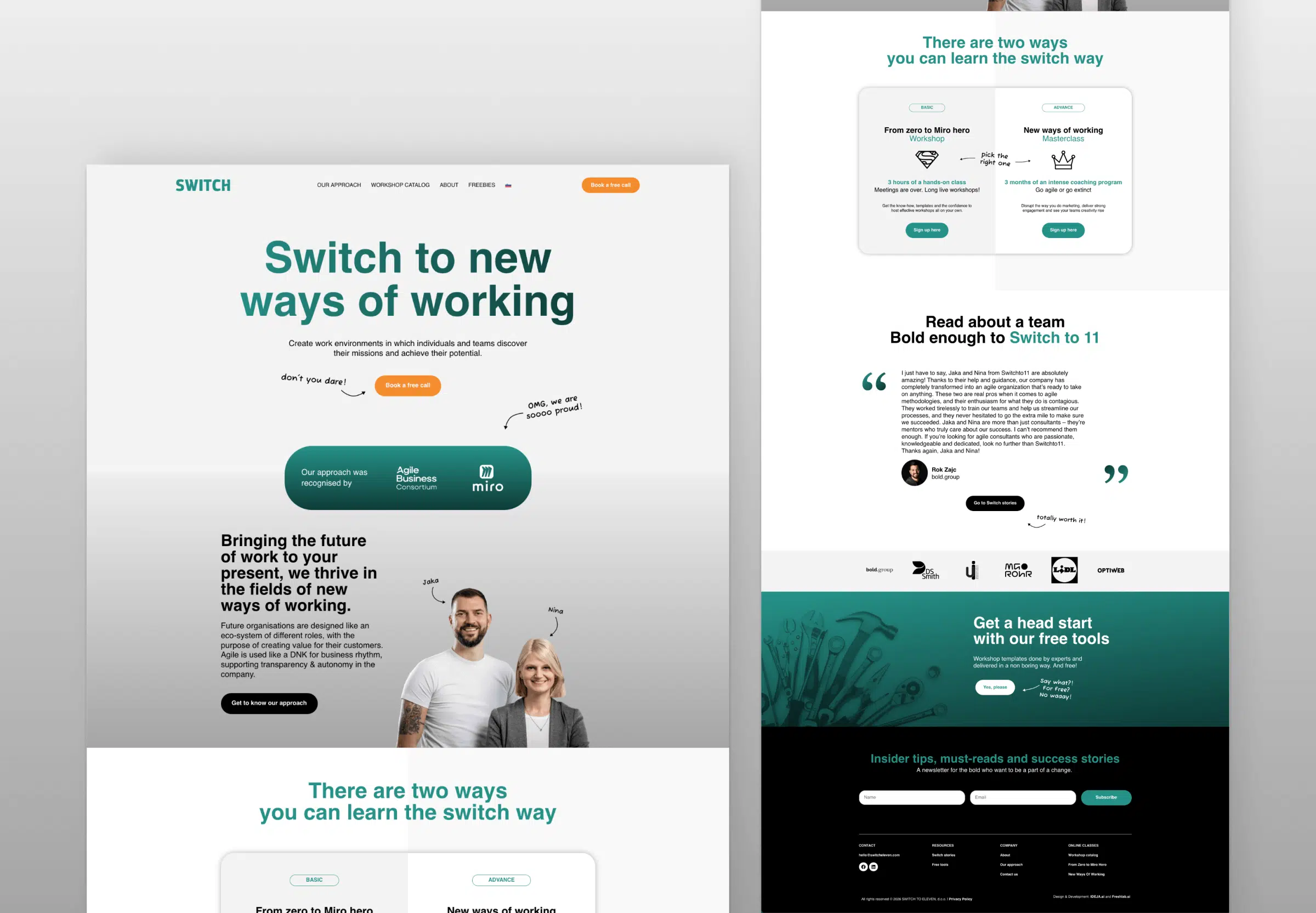 Switch is a consultancy that helps organizations adopt new ways of working, from agile transformations to team workshops. Their existing website no longer reflected the energy and credibility of their brand, especially after gaining recognition from Agile Business Consortium and Miro. They came to us for a complete rebuild that would better communicate their expertise and convert visitors into booked calls.